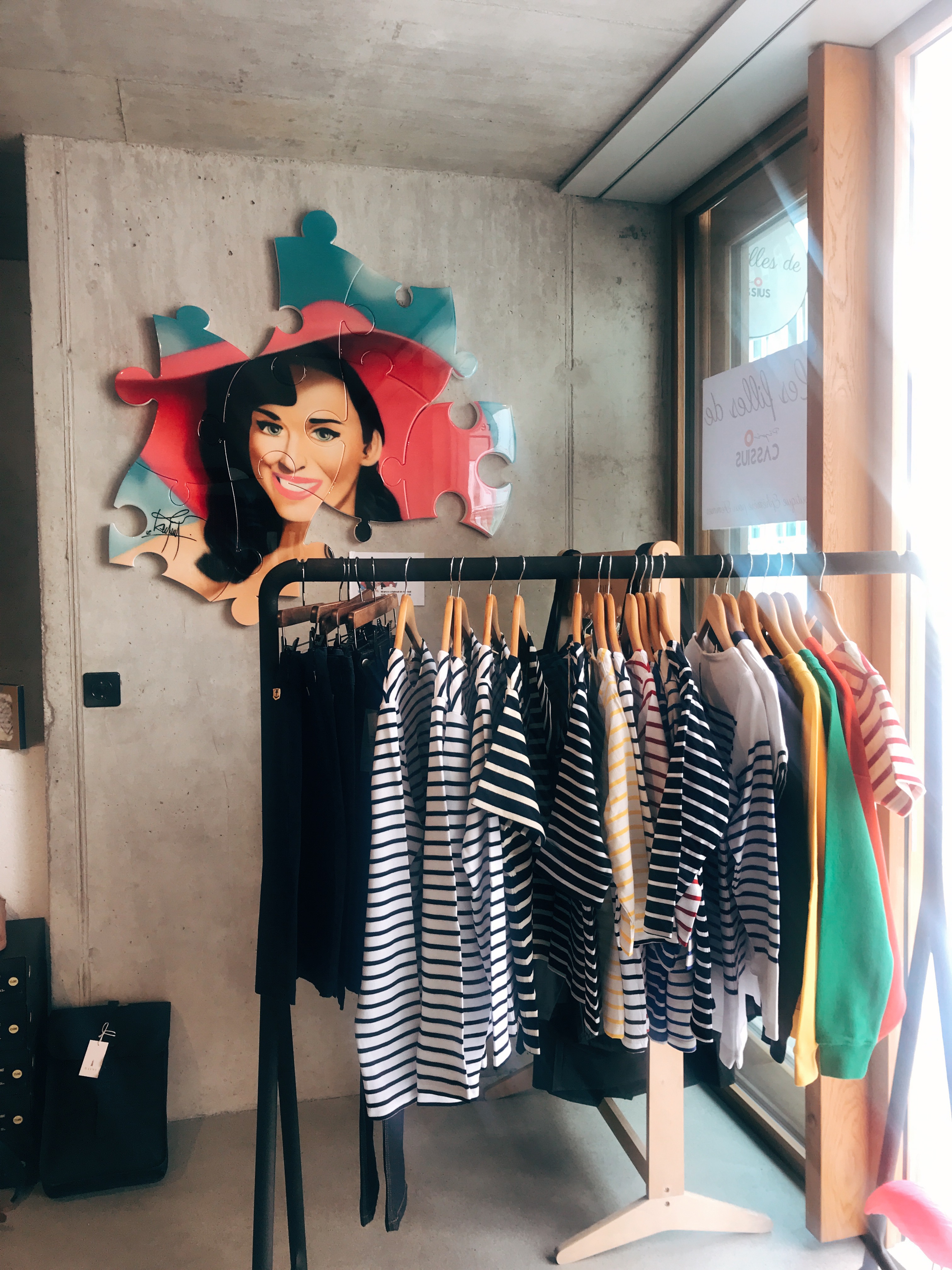 Comme ils se sont rendus compte qu’il fallait bien occuper Madame pendant que Monsieur faisait son shopping… (ah ben on veut l’égalité!), depuis le 13 avril et jusqu’au 15 juillet (je crois), un pop up store a été ouvert spécialement pour nous les filles! Avec des marinières, des tee-shirts, des baskets, des lunettes, des bougies et même des grenouillères pour les toutes petites.