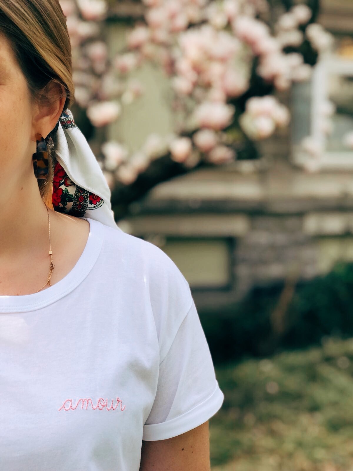 Perso j’ai craqué pour ce tee-shirt « Amour » de Maison Labiche qui se décline aussi en « Mademoiselle » ou « Chérie » :-).