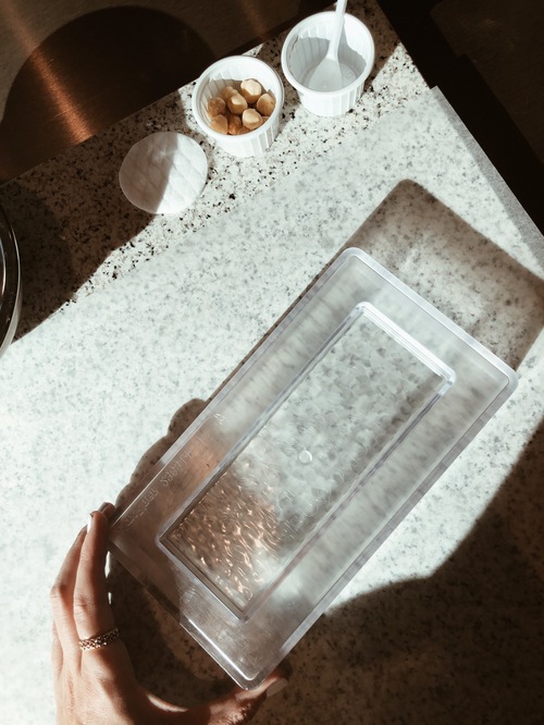 - On ouate le moule ! sorti du frigo on passe une rondelle de ouate pour bien enlevé tout résidu et avoir, au démoulage, un chocolat bien lisse et brillant