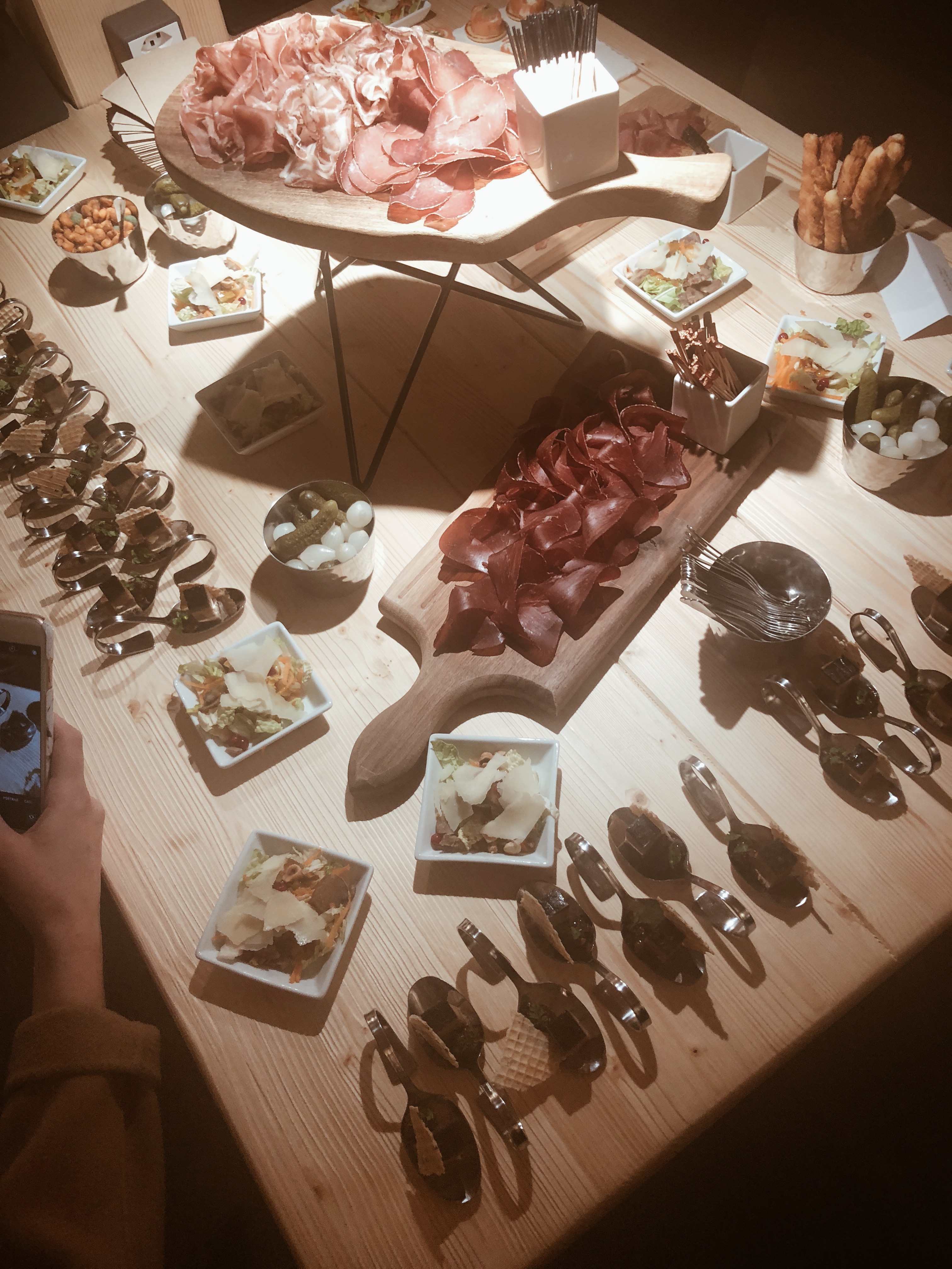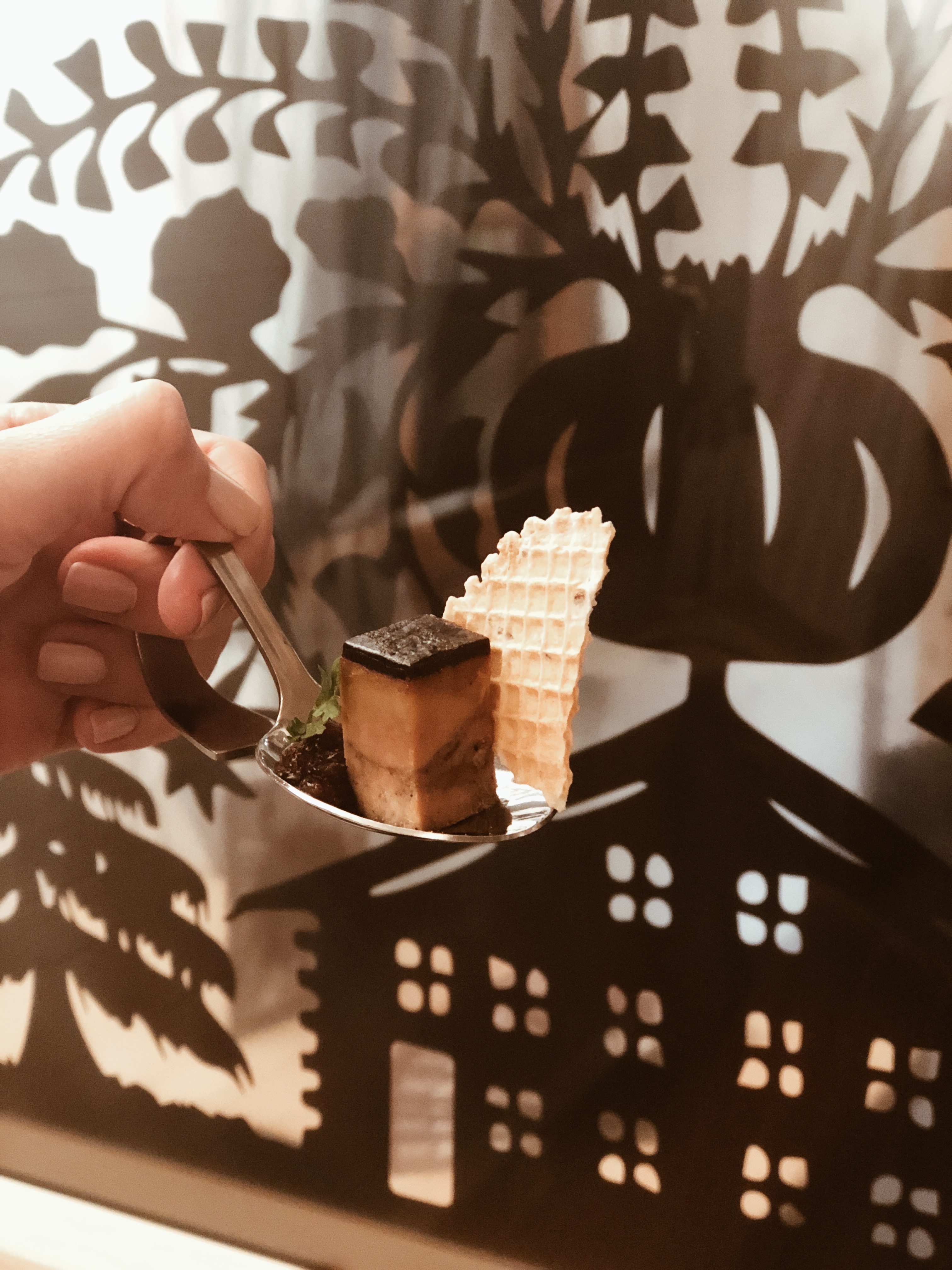 Bon j’ai pas goûté la raclette donc je ne pourrai pas vous en dire plus, mais les petits fours l’accompagnant… superbes, entre le cube de foie gras avec une petite gelée de fruits, des blinis au saumon, des macarons au chèvre, du tataki de bœuf sans oublier la viande séchée et les ptis cornichons. Cela sentait les repas de fin d’année à plein nez, on s’y approche dangereusement d’ailleurs !
