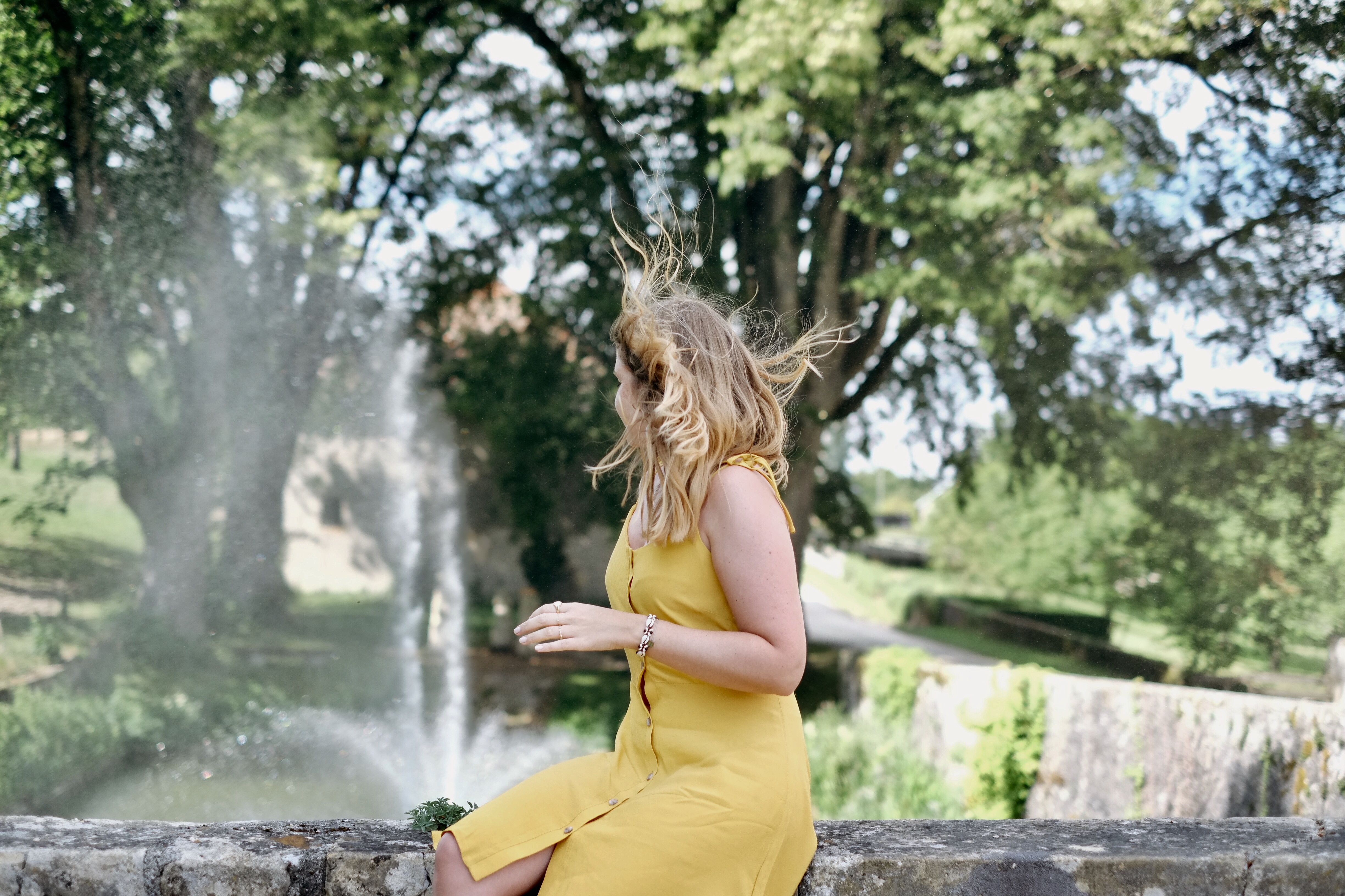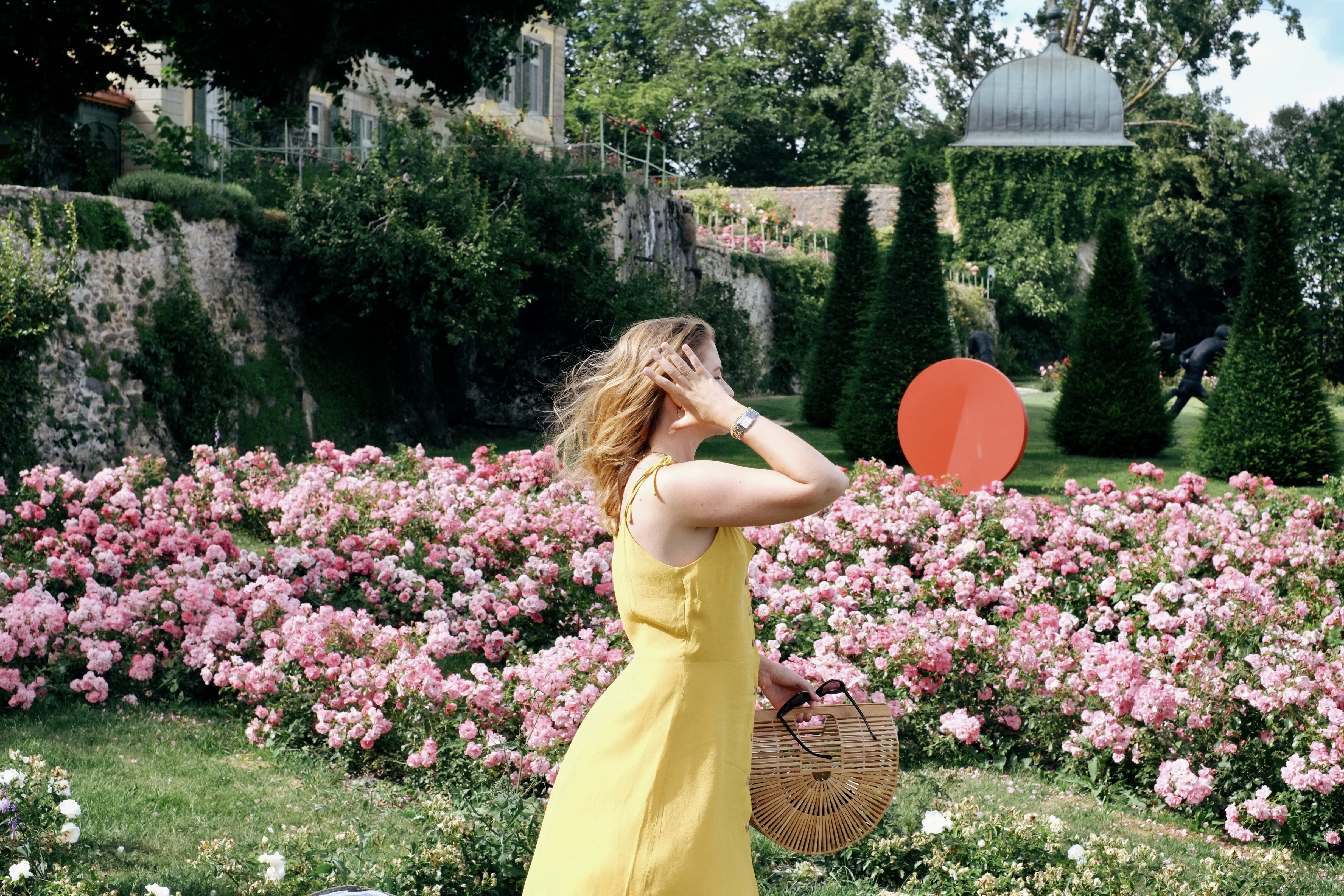 Je vous ai déjà parlé du Château de Vullierens et ses magnifiques jardins dans un précédent article et reviens avec une seconde tenue, un peu plus « champêtre » en simple robe jaune et espadrilles. Parfait pour une petit pique-nique à la campagne.