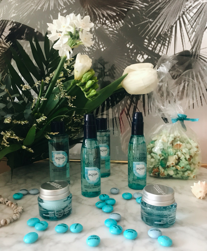 Du coup, j’ai eu une semaine plutôt tranquille pour reprendre mes petites habitudes. Semaine qui s’est terminée par un joli événement l’Occitane et la présentation de la nouvelle gamme Aqua Réotier (comme vous l’avez peut-être vu dans mes stories, toujours à la une sous #evenements si jamais). Découverte totale pour ma part grâce à Ludivine du blog Monicadevonsemele. Sa marque fétiche mais qu’elle a malheureusement loupé. En même temps, elle était en Thaïlande (bon dans l’avion du retour pour être complètement honnête), y a plus dur quand même!