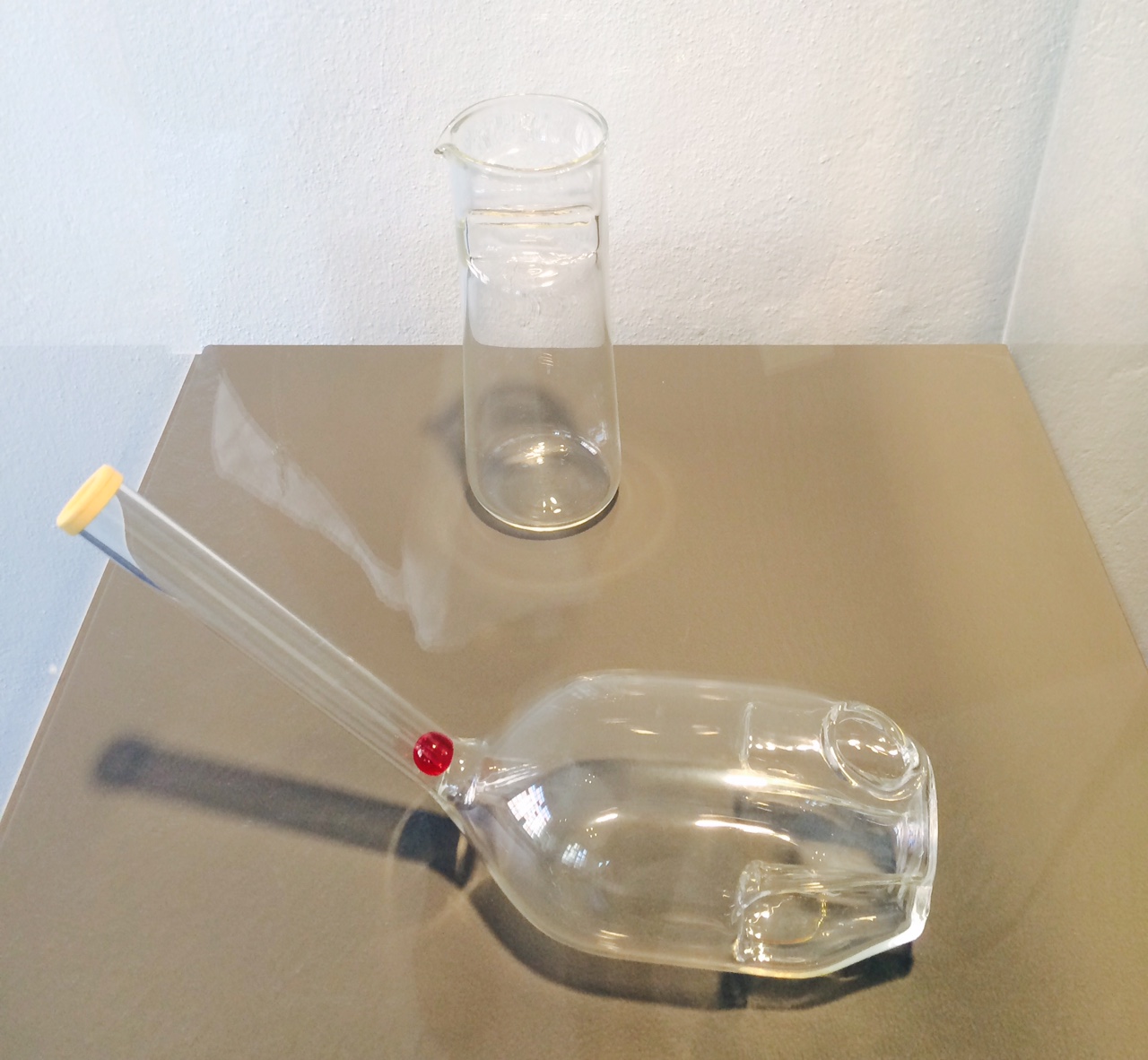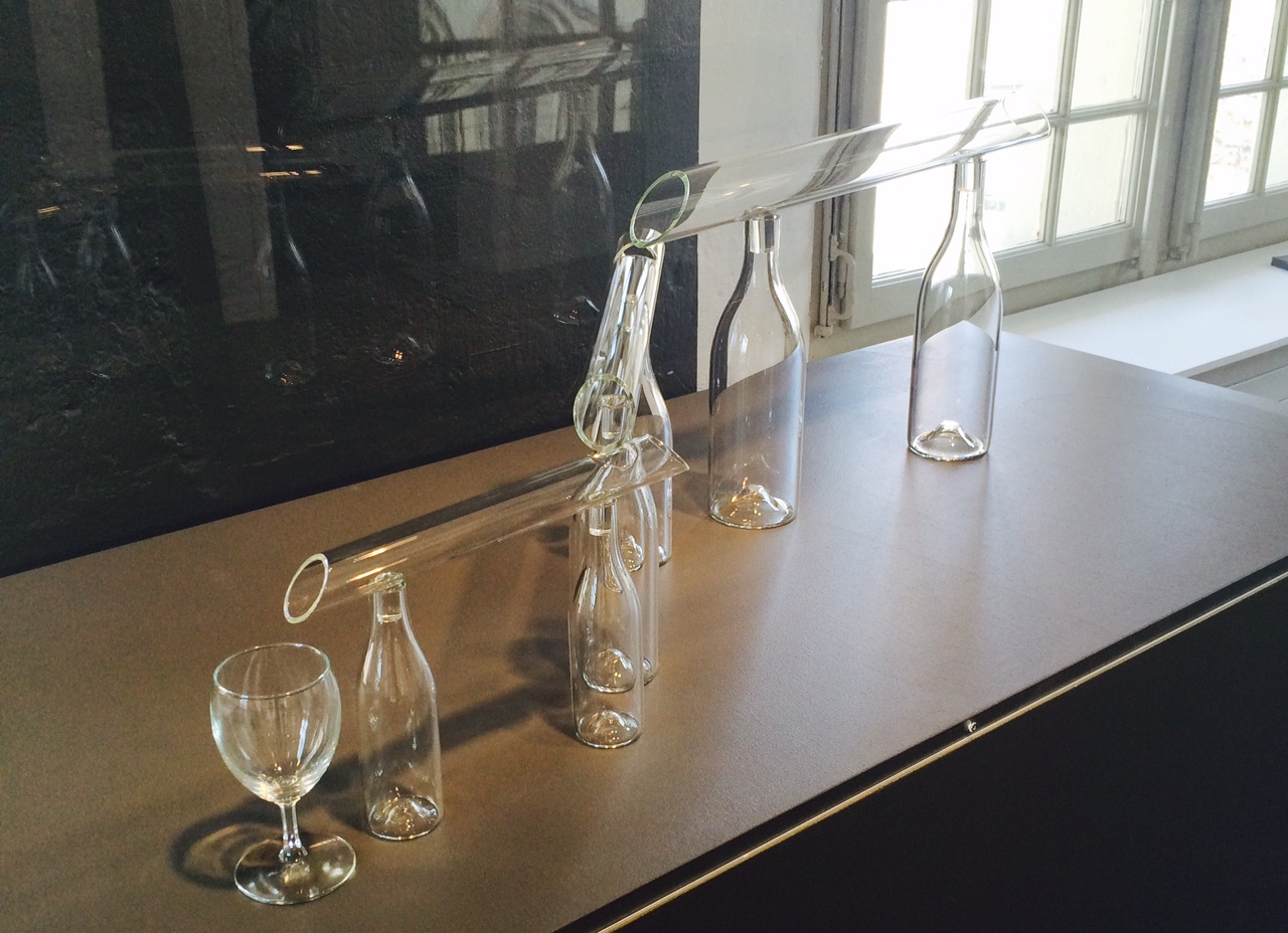 Mais revenons à cette exposition, montée en collaboration avec le Musée du vin (oui oui du valaisan en terre vaudoise…), le but n’est pas de retracer l’histoire du verre et de la bouteille en quelques œuvres contemporaines mais plutôt d’établir des liens entre la fonction initiale d’un contenant et la verrerie contemporaine.