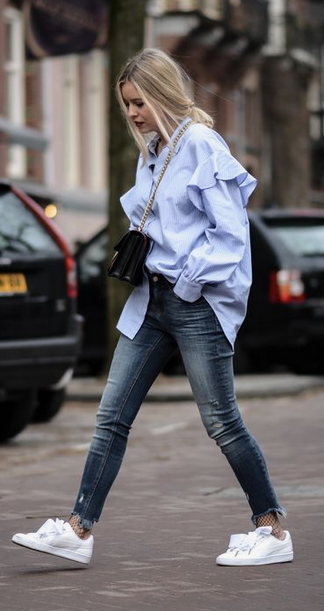 Vous les avez peut-être déjà toutes vues sur les vraies blogueuses mode, la plupart chaussent du Balenciaga Triple S avec une semelle plus épaisse et un peu ondulée. Personnellement je ne suis pas des plus influencées pour celles-ci, cela se rapproche trop dangereusement des Buffalo que je portais jadis (oui je sais… il fallait que jeunesse se fasse), en plus on dirait que ce sont des baskets retrouvées au fin fond d’une boîte au garage et je suis plutôt partisane des chaussures fines surtout avec ma taille si en plus on porte des baskets grossières, ça a tendance à vite nous tasser.