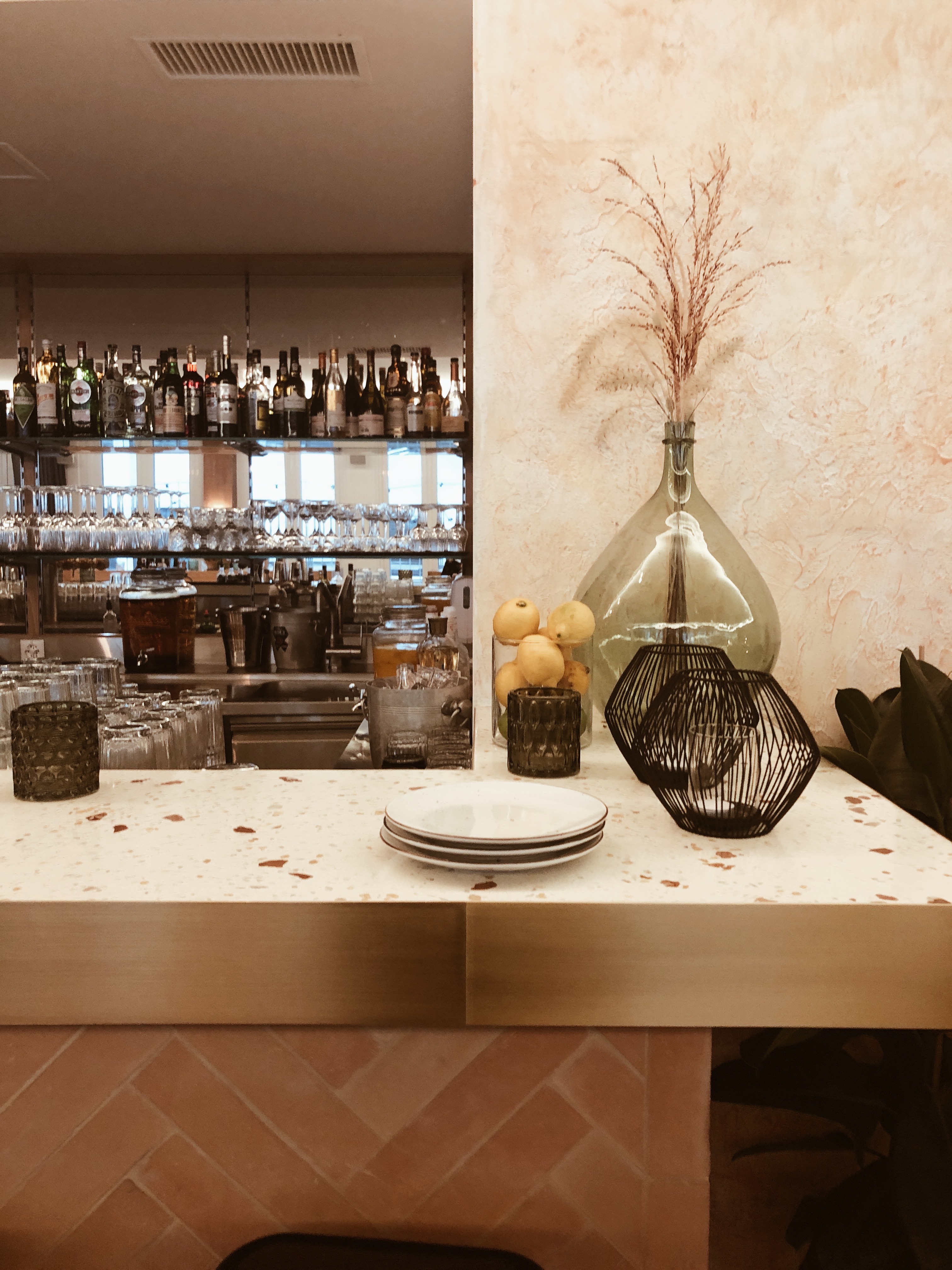 Le bar a été refait également, on adore, aussi, surtout les ptis plumets dans le vase.