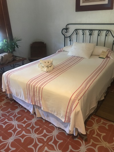 Nous avons séjourné à la Casa del Balam très bien, bien situé en plein centre ville, avec à nouveau une jolie cour intérieure pour prendre le petit déjeuner, chambre immense. Attention par contre, il y a de la musique et du bruit jusqu’à tard dans la nuit, ce qui a un peu empêché certaines de bien dormir. Perso, j’ai dormi comme un bébé…