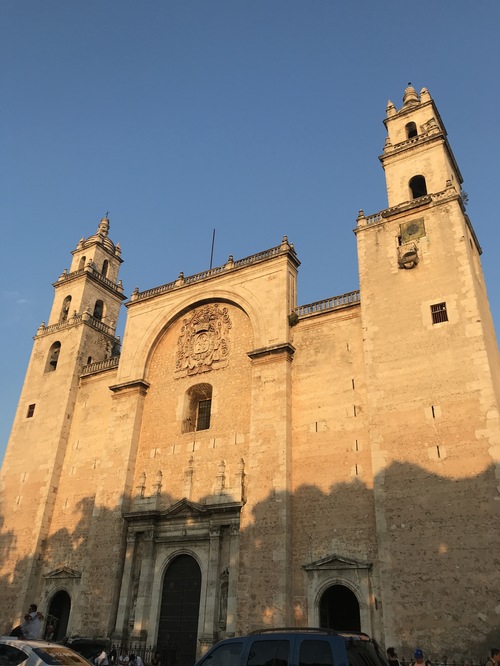 Sur la route en direction de Mérida, nous nous sommes arrêtées à Izamal pour voir son couvent jaune-ocre et son impressionnant atrium. Après quelques photos il était l’heure de manger et surtout de bosser.