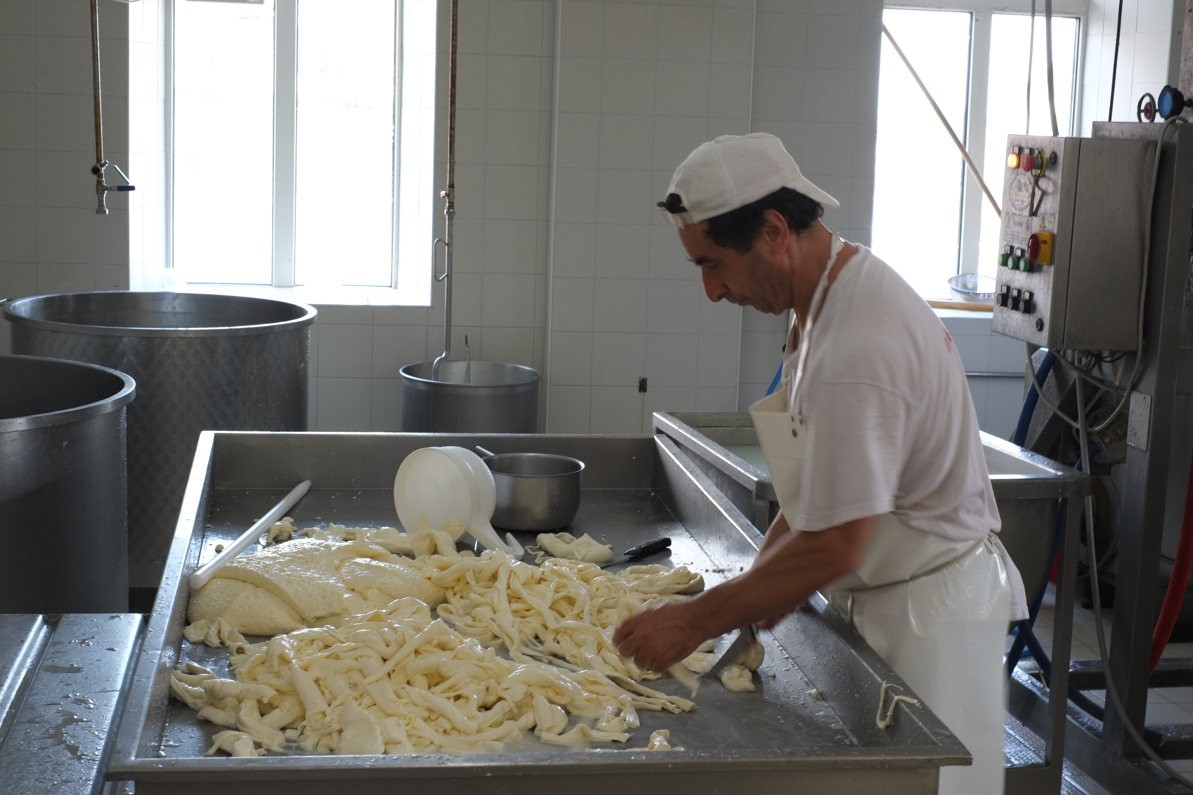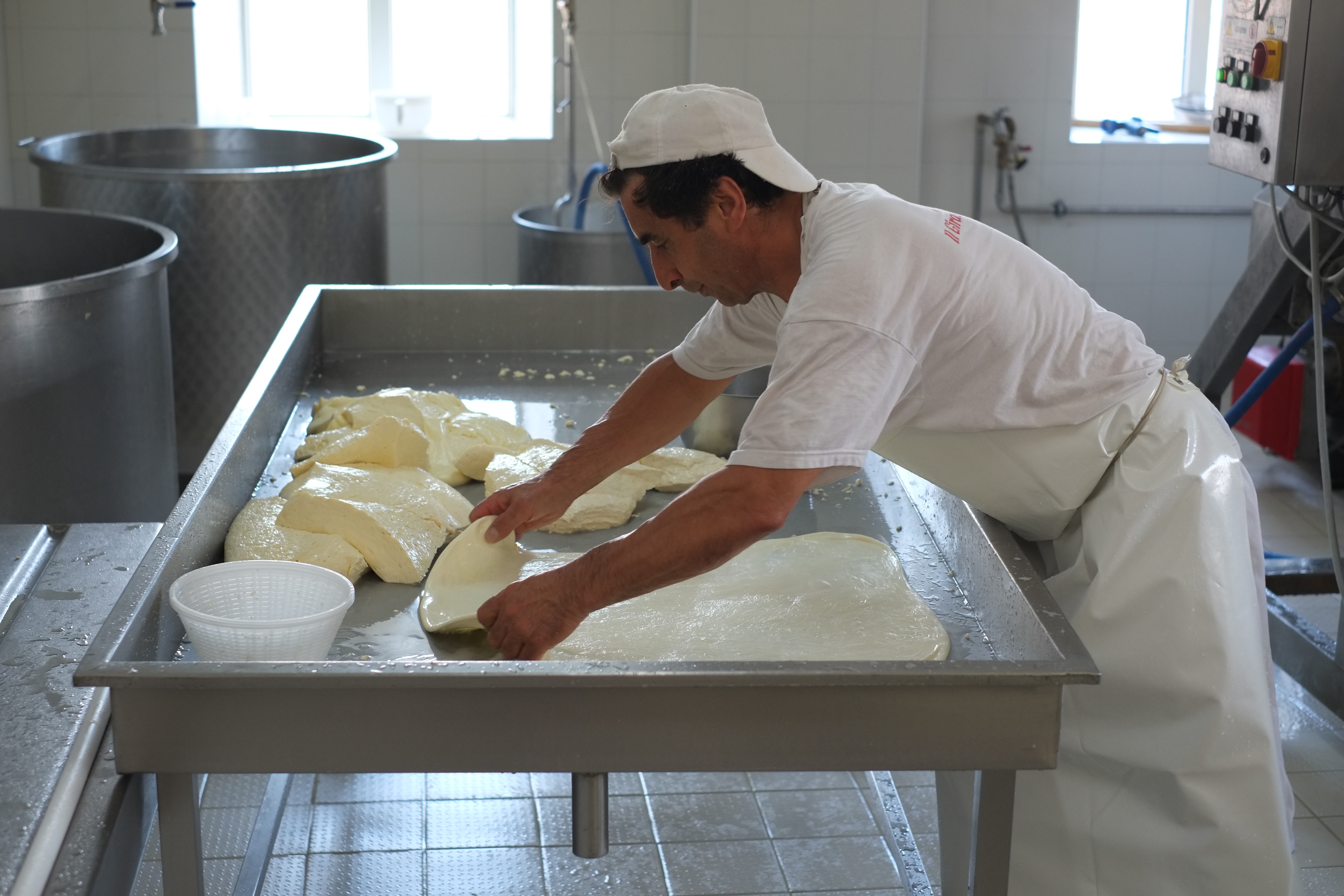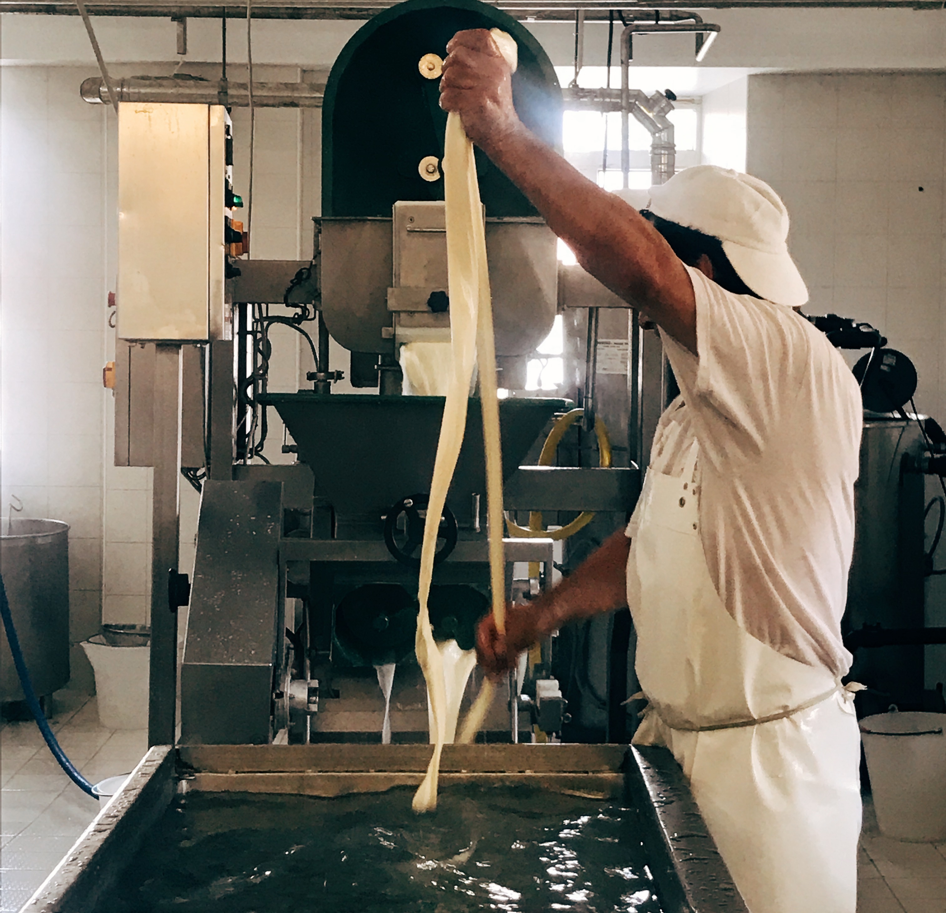 Le processus est toujours le même, c’est avec une eau à 90 degrés que le lait caillé est travaillé pour donner une pâte plus ou moins malléable selon le fromage désiré.