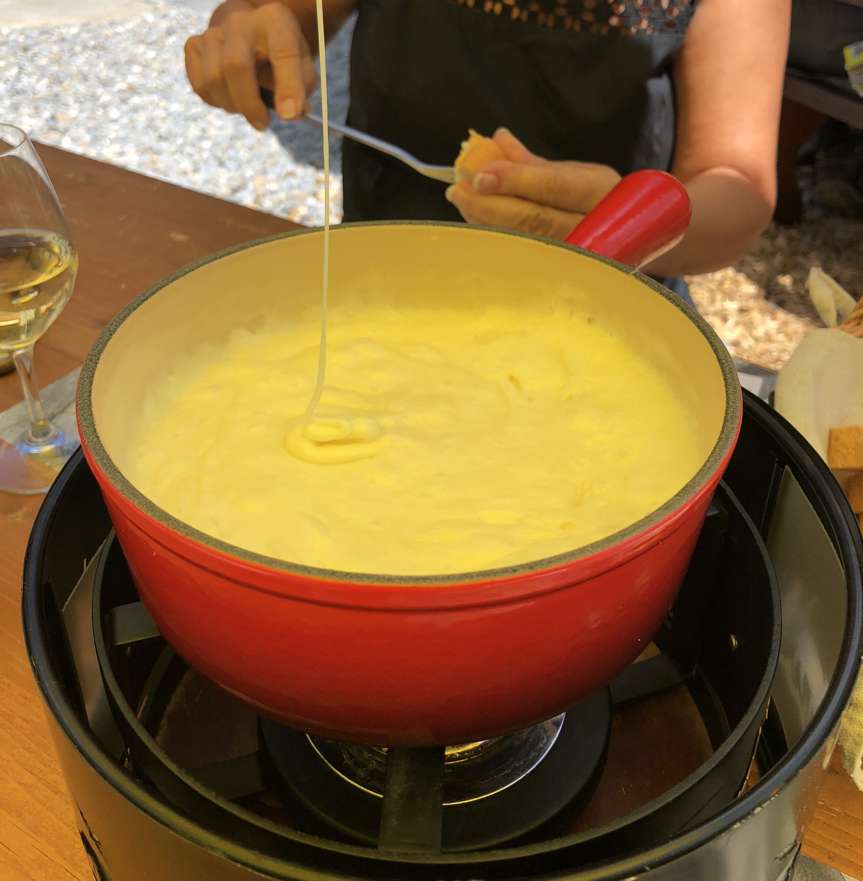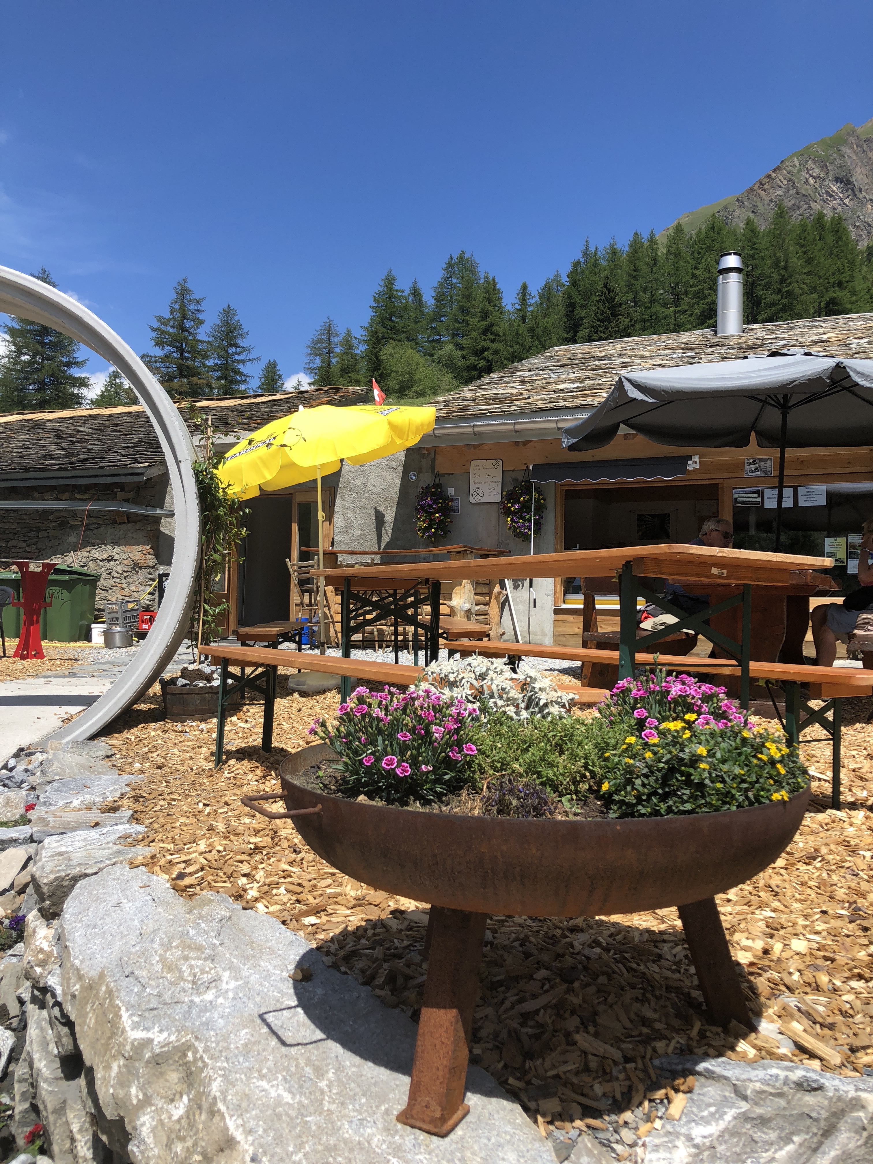 Du coup parqués presque sur la terrasse, nous avons mangé un pti qqch quand même à la buvette d’alpage des Ars, forcément que des mets au fromage ou presque, rien de tel qu’une petite fondue à 25 degrés à l’ombre de la montagne. Merci papa et maman pour la découverte.